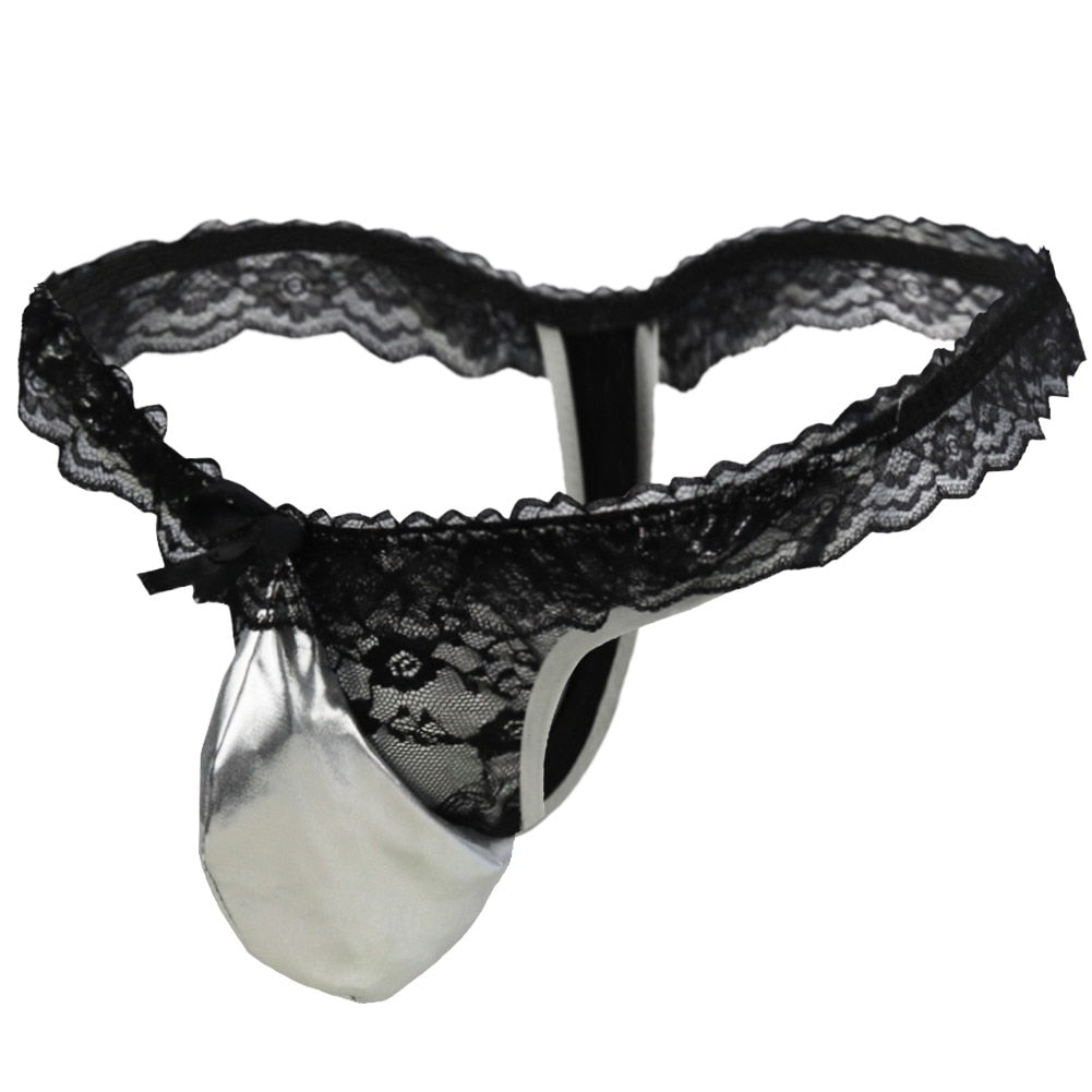 Fun lace & leather pouch thong manties - the ultimate feminine panty for men